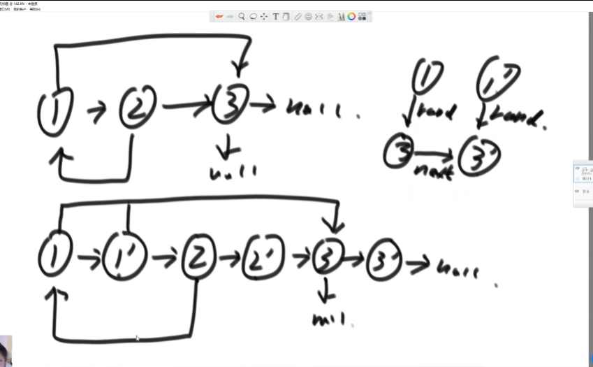 - (面试思路)先遍历单链表,然后在每个节点后插入一个新的节点