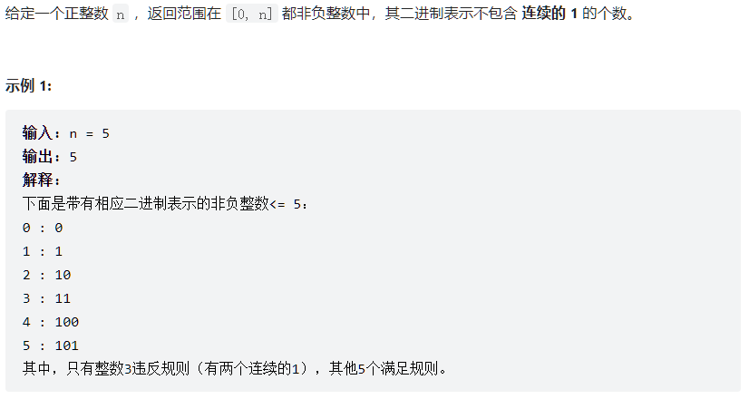 Leetcode Link: 600. 不含连续1的非负整数 - 力扣(LeetCode)