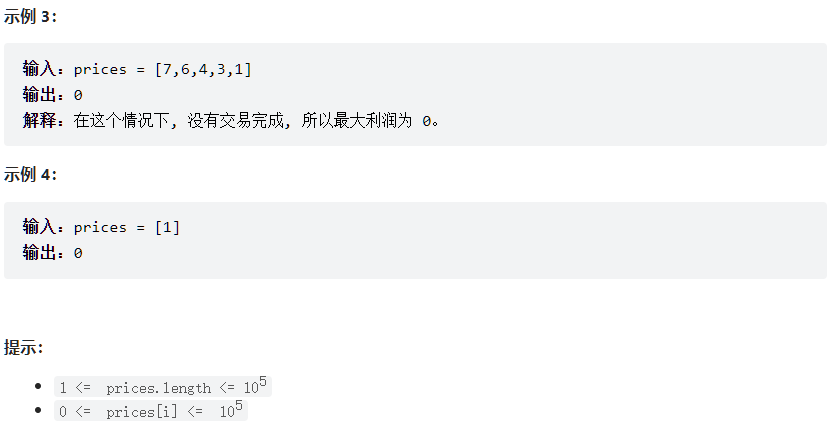 给定一个数组,它的第 i 个元素是一支给定的股票在第 i 天的价格。