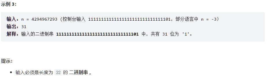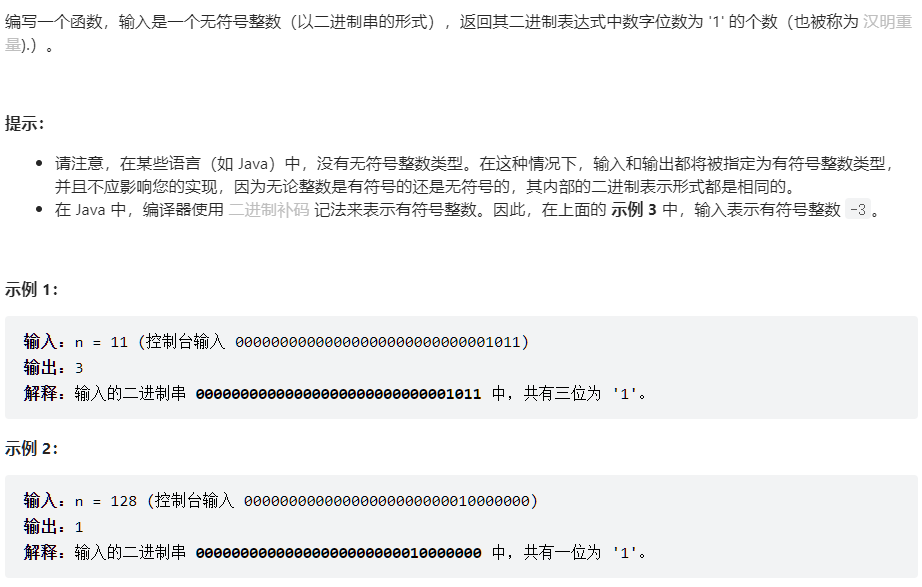 Leetcode Link: 191. 位1的个数 - 力扣(LeetCode) 剑指 Offer 15. 二进制中1的个数 - 力扣(LeetCode)