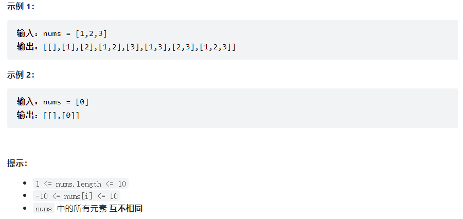 给你一个整数数组 nums ,数组中的元素 互不相同 。返回该数组所有可能的子集(幂集)。