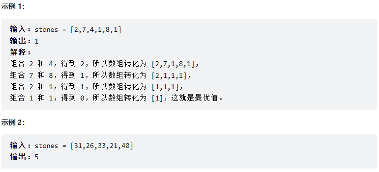 有一堆石头,用整数数组 stones 表示。其中 stones[i] 表示第 i 块石头的重量。