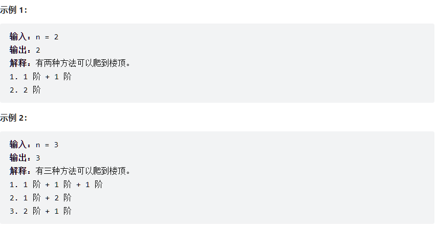每次你可以爬 1 或 2 个台阶。你有多少种不同的方法可以爬到楼顶呢?