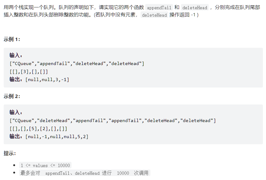 Leetcode Link: 剑指 Offer 09. 用两个栈实现队列 - 力扣(LeetCode)