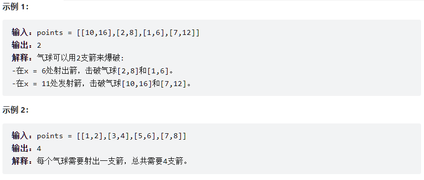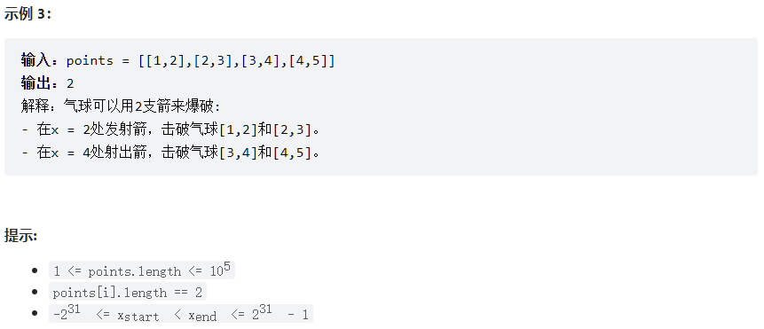 给你一个数组 points ,返回引爆所有气球所必须射出的 最小 弓箭数 。
