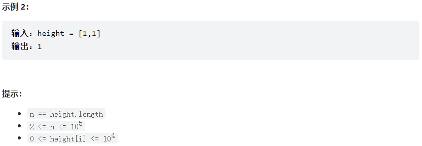 给定一个长度为 n 的整数数组 height 。有 n 条垂线,第 i 条线的两个端点是 (i, 0) 和 (i, height[i]) 。