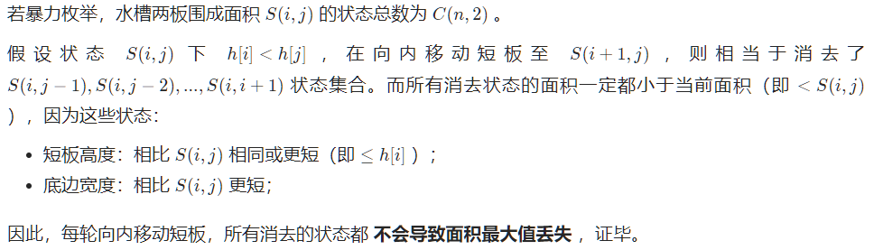 min(h[i],h[j])不变或变小,因此下个水槽的面积 一定变小 。