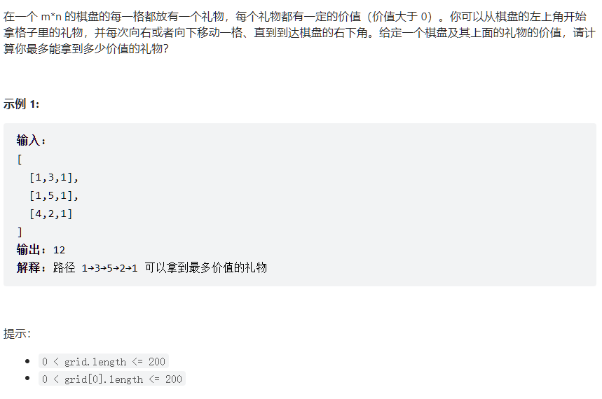 Leetcode Link: 剑指 Offer 47. 礼物的最大价值 - 力扣(LeetCode)