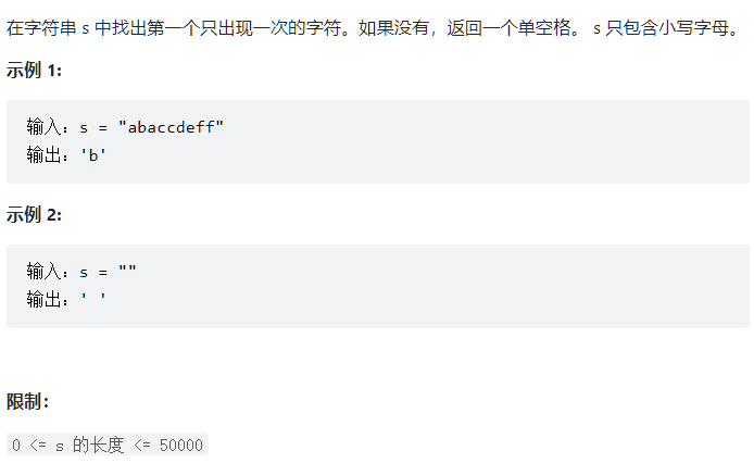 Leetcode Link: 剑指 Offer 50. 第一个只出现一次的字符 - 力扣(LeetCode)