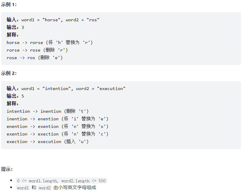 return process(len(word1)-1, len(word2)-1)动态规划