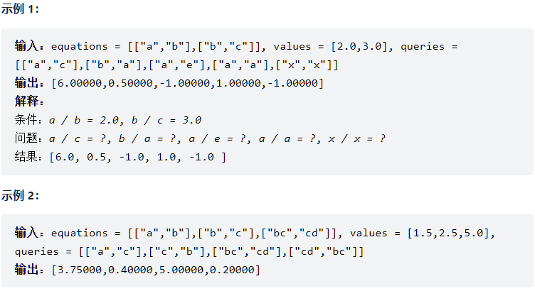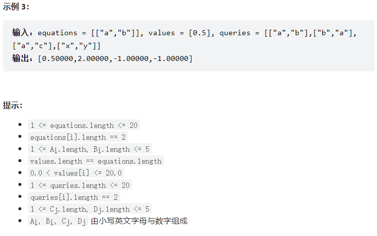 **注意:**输入总是有效的。你可以假设除法运算中不会出现除数为 0 的情况,且不存在任何矛盾的结果。