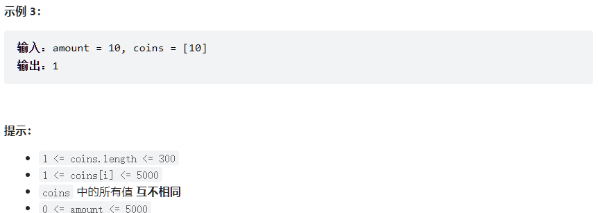 给你一个整数数组 coins 表示不同面额的硬币,另给一个整数 amount 表示总金额。