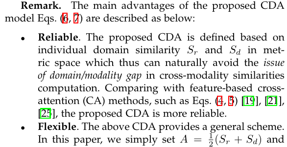 And then, we can calculate the cross-attention output as . However, the author think that it is simple to interact with different modalities by . The intrinsic modality/domain gap make the results are unreliable.