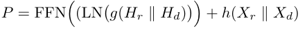 其中 $D_r, D_d$ 是对角矩阵,每个元素的值是对应 $S_r, S_d$ 行的和 (原文是 where $D_r, D_d$ is a diagonal matrix with elements defined by the row-addition of $S_r, S_d$) - Calculate CDA as  其中, $A=\frac{1}{2}(S_r+S_d)$, balancing hyper-parameter $\epsilon\in (0,1)$, $S_{rd}^{(0)}, S_{dr}^{(0)}$ can be initialed as the identity matrix $I$ or some other initial affinity matrices obtained by using other approaches, such as affinity matrix $A$. In this paper, set $S_{rd}^{(0)}=S_{dr}^{(0)}=I$ . We have  > [! Question] 意义是什么?需要参考 RDP[26]?为什么归一化时的对角矩阵要计算每个行的和? > [! Discussion]- >  Now, we have four components ( 2/each modality), i.e., $\{M_r, M_{rd}\}$ and $\{ M_d, M_{dr}\}$ (obtained by SA and CDA module). Then, get a more reliable representation $H$ for each modality  即 cat 起来之后通过两个卷积网络($f_{r/d}()$, 不同模态不同项权重) **Aggregation block** The final output of MutualFormer is the modality-invariant and context-aware representations $P$ for tokens.  $\|$ 表示 cat,$g,h$ 分别表示两层卷积 (不共享权重),FFN 表示两个 FC 层(激活函数是 GELU),LN 表示 layerNorm 可以看到,这里有一个类似残差的东西。 ### 网络结构 由于 MutualFormer 是一个模块,作者将其应用在了 RGB 和 Depth 的两种模态的任务上,实例化的网络结构为  ## Experiments ## Some Descriptions