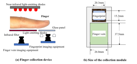 - The image collected by the fingerprint and finger vein collection module integrated in the same space was quite different from the image collected by the fingerprint and finger vein collection module separately, and is more difficult for identity.