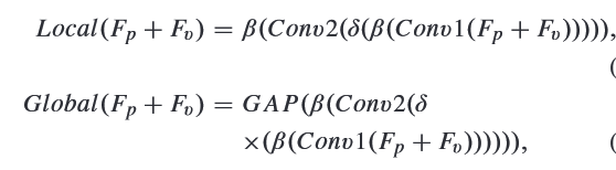 where and are both pointwise convolution; is ReLU, is global average pooling; is batch nomalization. - Use addition to connect local and global features, and used sigmoid to get the weight (may be like attention?)