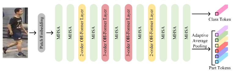 - 最后一层的输出丢掉 CLS Token 后剩下的经过 Adaptive Average Pooling 后得到 Part Tokens (ReID 中用于表示身体部位的 tokens)
